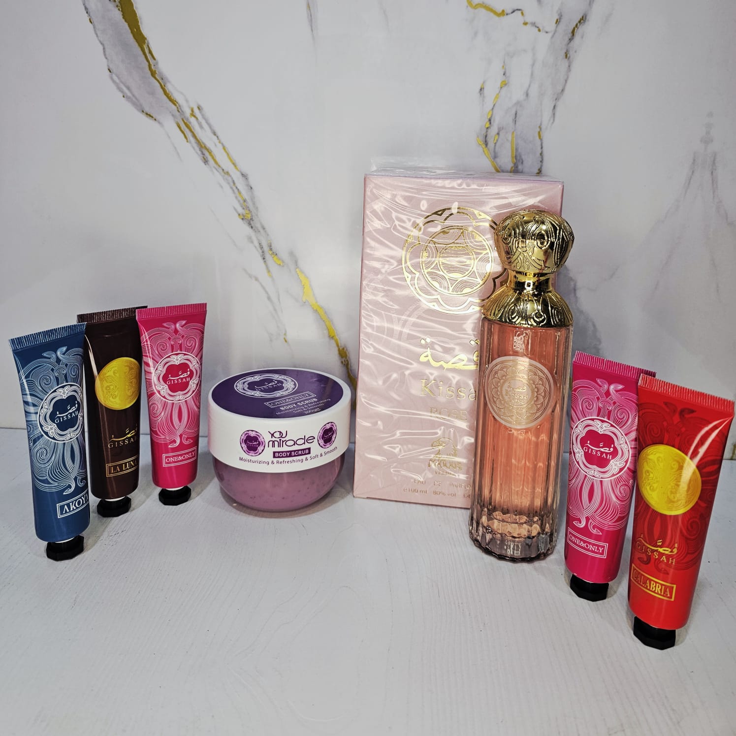 ✨ بكج قصة الفخم وصل 😍💗 لو بدك هدية ناعمة ومرتّبة وسعرها ولا أروع… هذا البكج رح يعجبك!   مكونات البكج: 💗 عطر قصة الوردي – حجم 100ml وثبات خيااالي 🧁 سكراب جسم قصة – بروائح متنوعة تخلي ريحتك غير 🌸 كريم قصة المرطّب – نعومة ولمعة وكل أنوثة   السعر فقط: 11.99 😱🔥 ✔️ تغليف مرتب ✔️ مناسب هدية أو دلّع نفسك   احجزي قبل ما يخلص 🤍✨