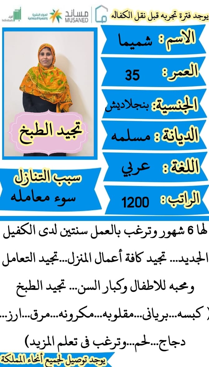 خبرة في التنظيف، الطبخ، ورعاية الأطفال 👶🏻