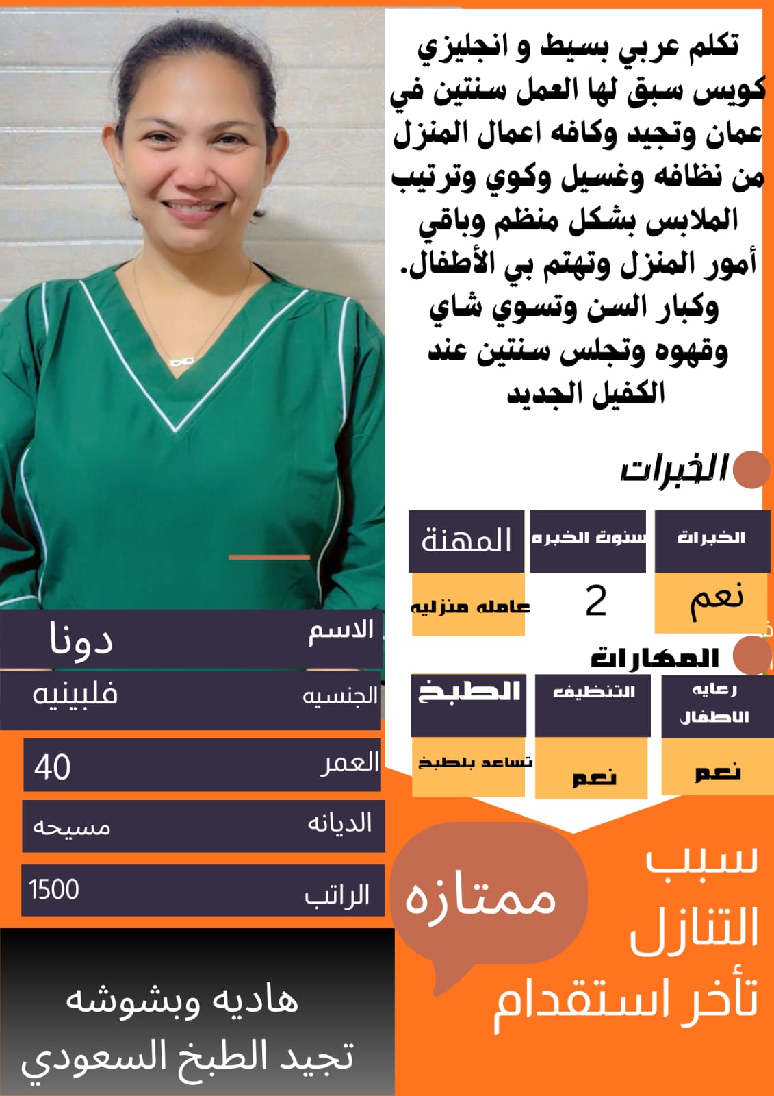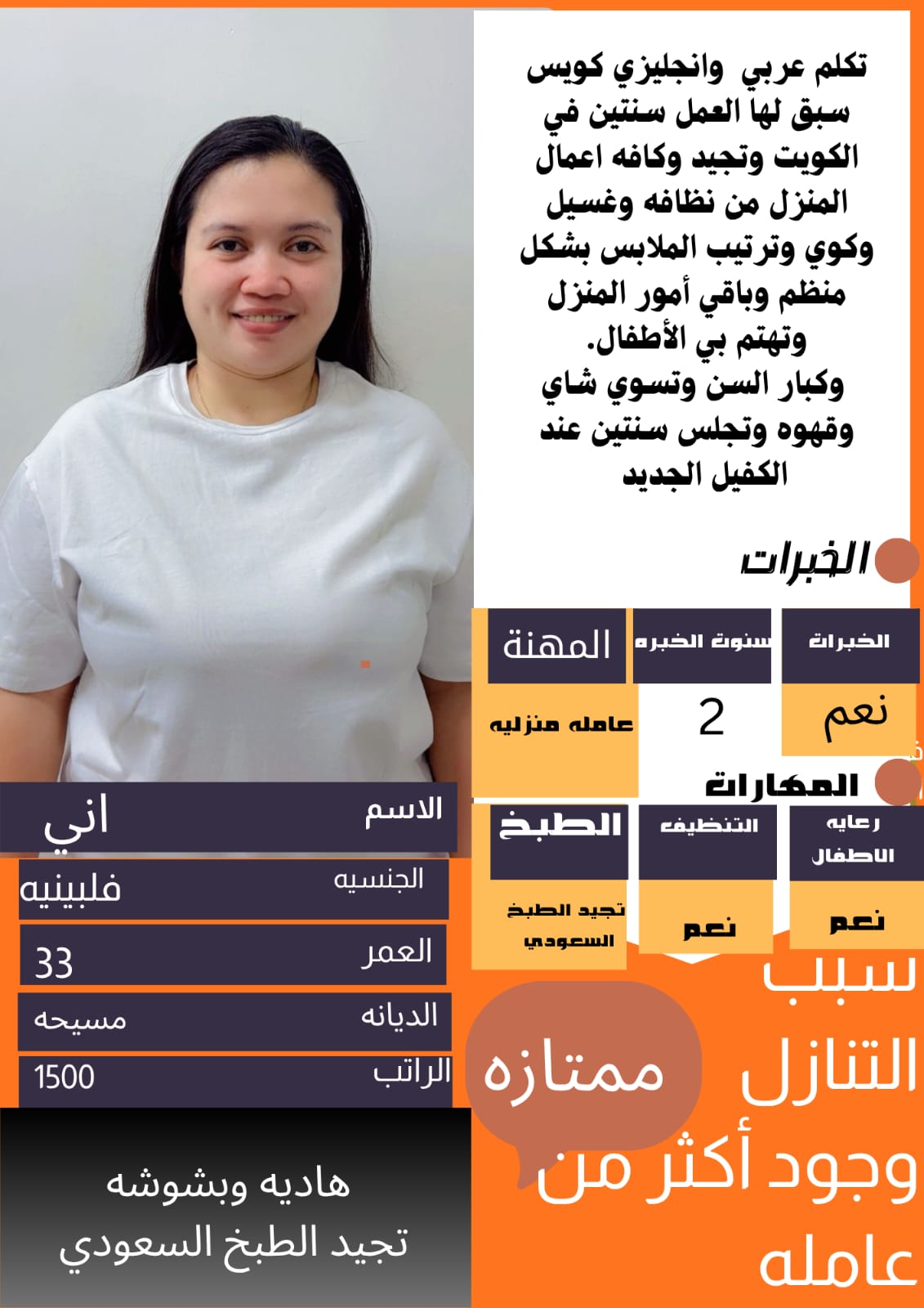 – خادمات ذوات خبرة وكفاءة عالية