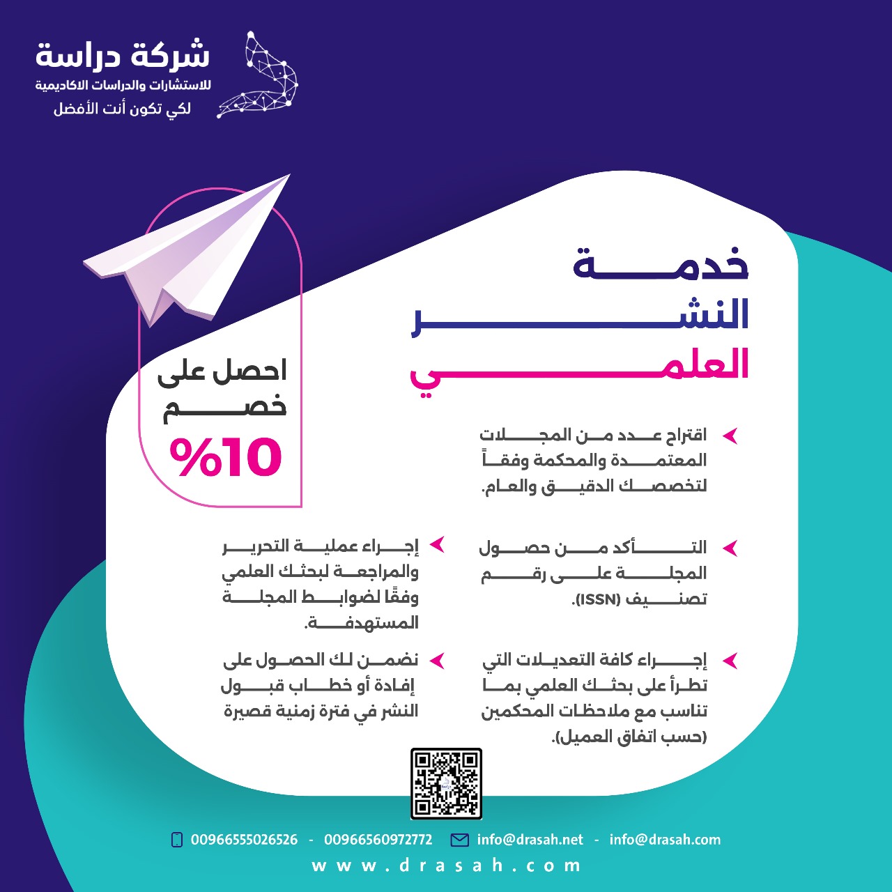 نحن في شركة دراسة للاستشارات والدراسات الأكاديمية نساعدك في الوصول إلى النشر العلمي الموثوق، ورفع جودة بحثك بما يتوافق مع معايير النشر العالمية.
