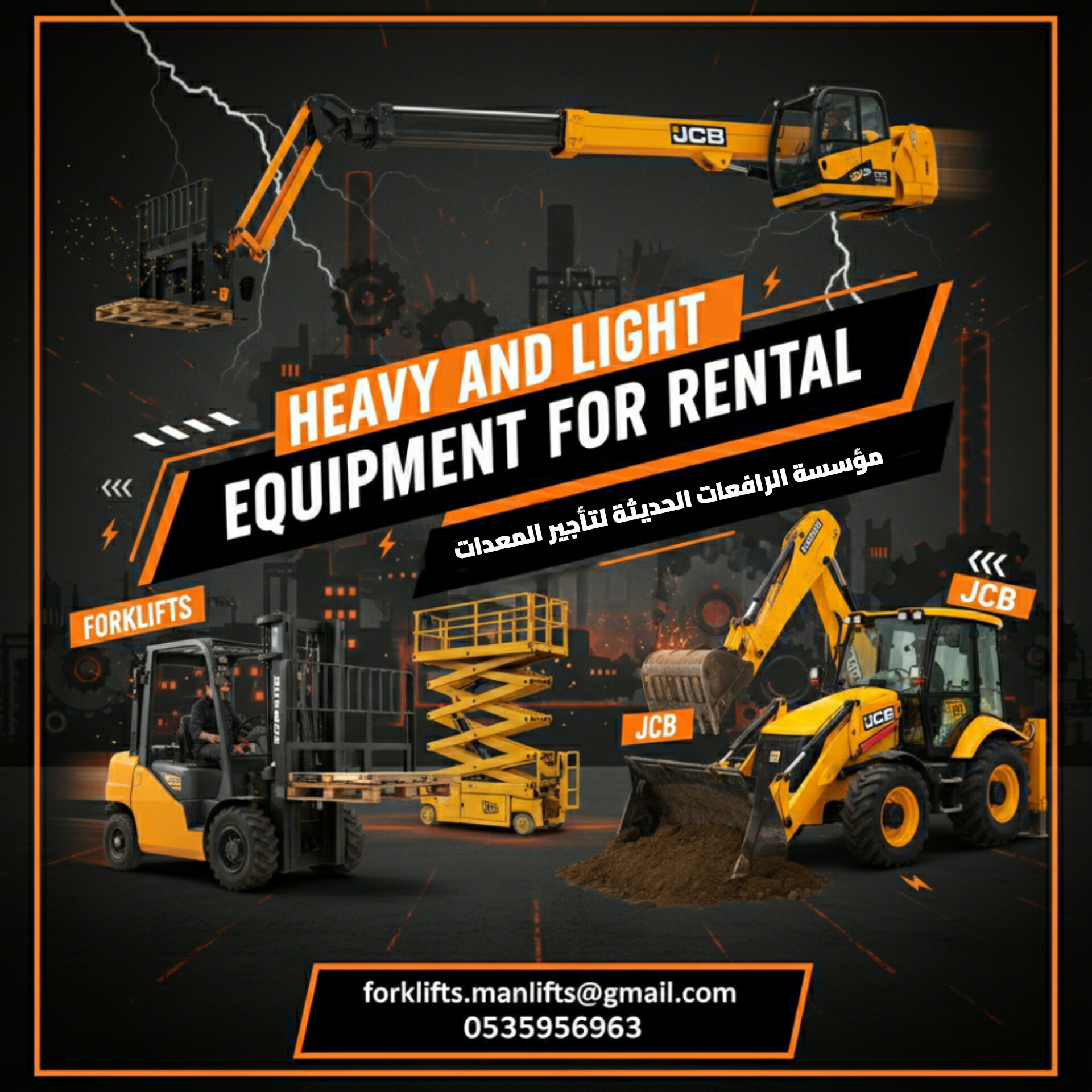 مع مؤسسة الرافعات الحديثة لتأجير المعدات تضمن إنجاز أعمالك بأعلى كفاءة وأمان باستخدام أحدث المعدات في السوق السعودي.