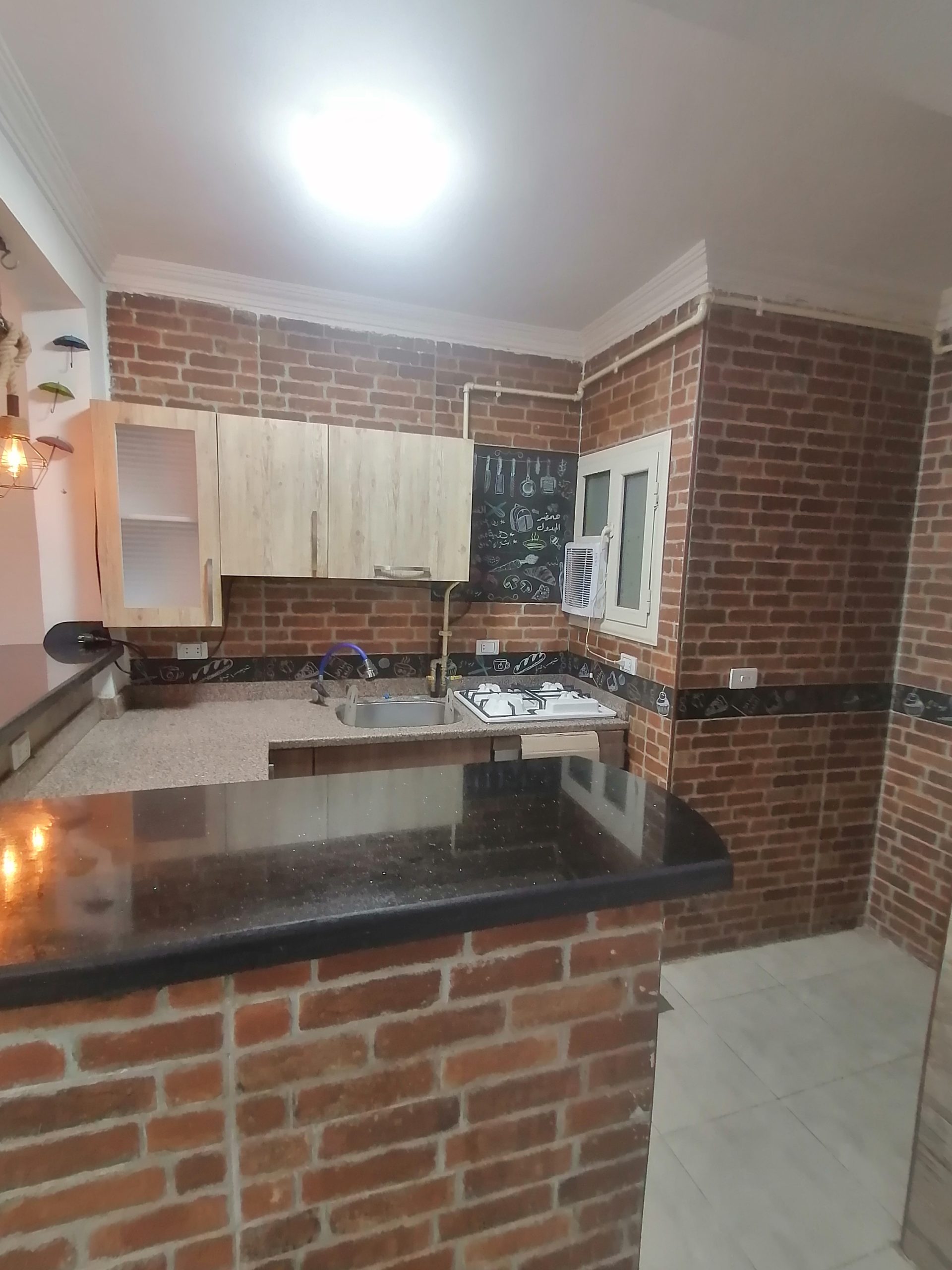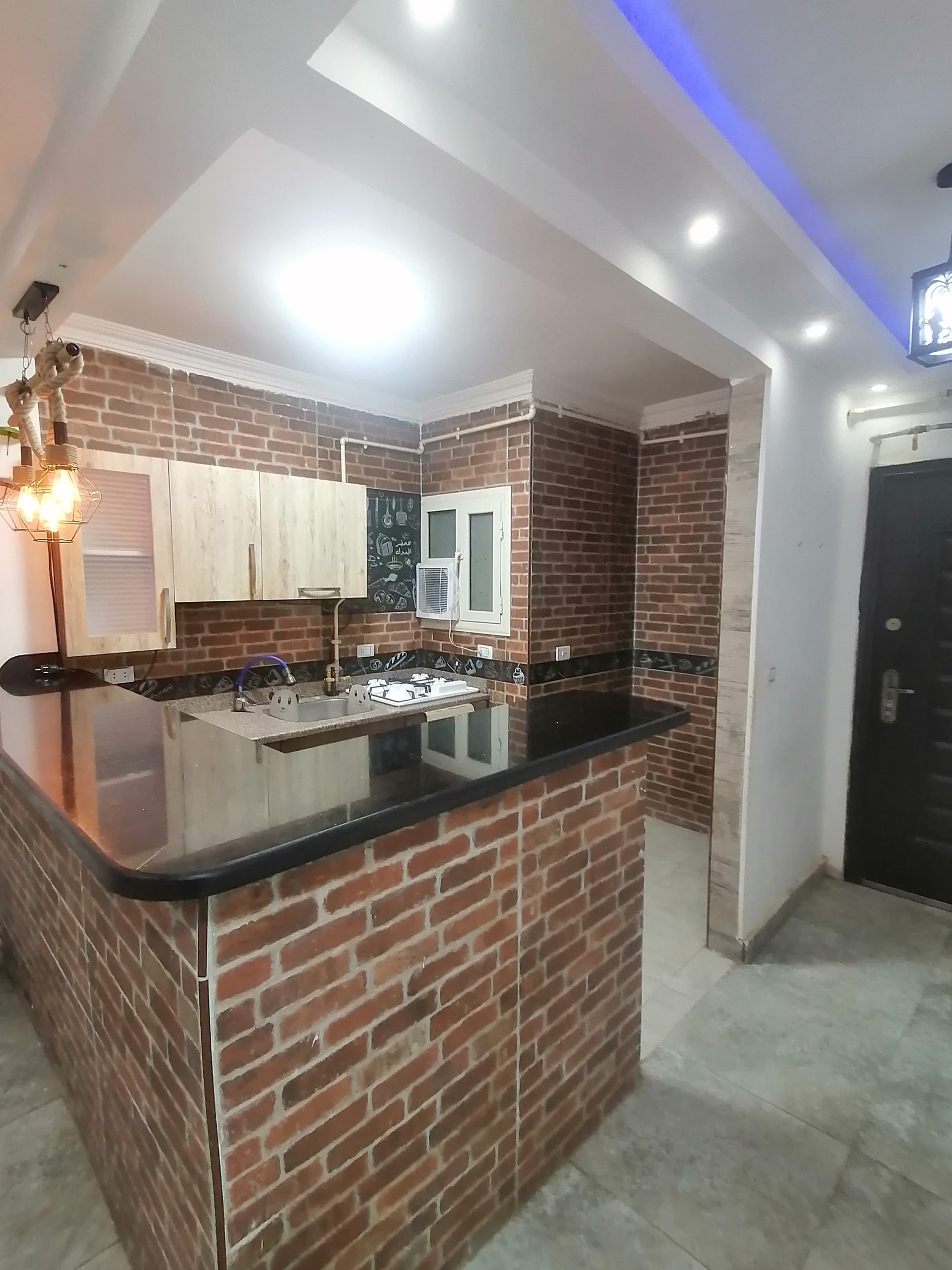مطبخ خشمونيوم جديد بتصميم مميز ورائع وموقد بلت ان إيطالى وفرن بلت إن إيطالى ورخامة جلاجسي اسود هندي (تم تركيبة اليوم)
