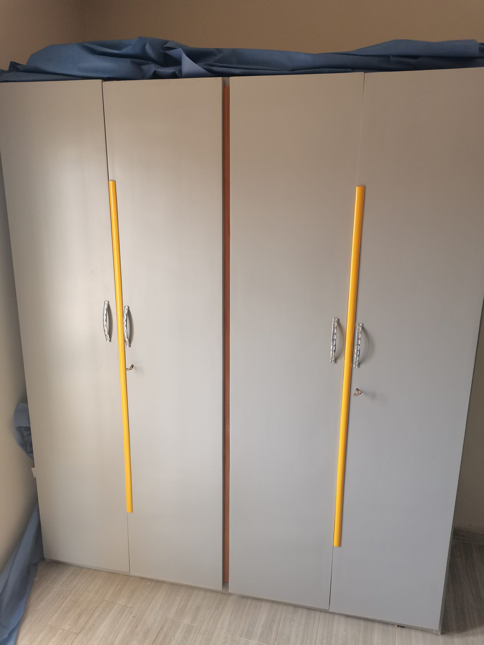 مكونة من سريرين و دولاب و كومود و مراية و ٤ برتشنات كل ٢ فوق سرير