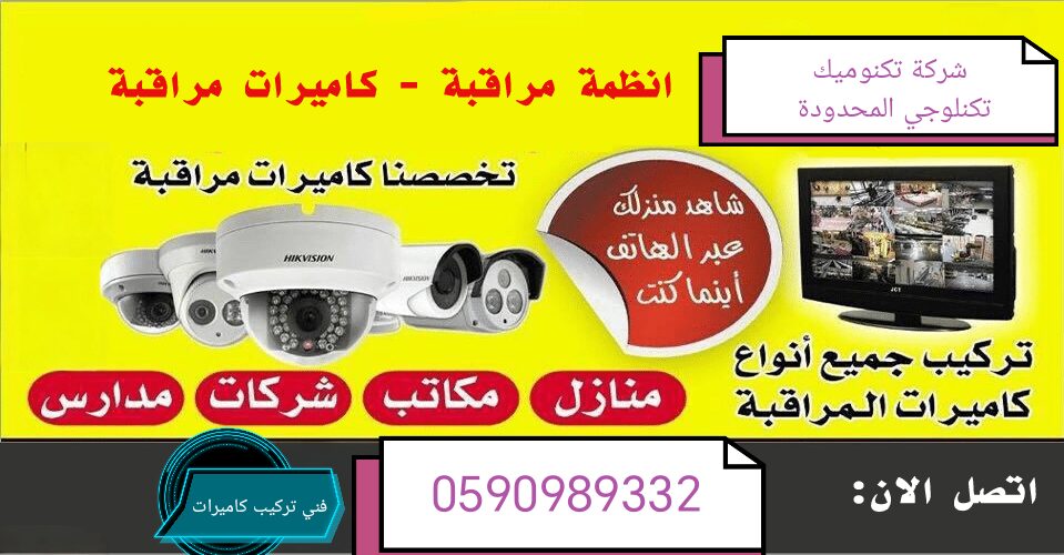 خبرة  وأحترافية عاليةفي تركيب وصيانة كاميرات المراقبة الداخلية والخارجية، وأنظمة الإنتركم الصوتي والمرئي للمنازل – الشركات – المحلات التجارية ضمان سنتين