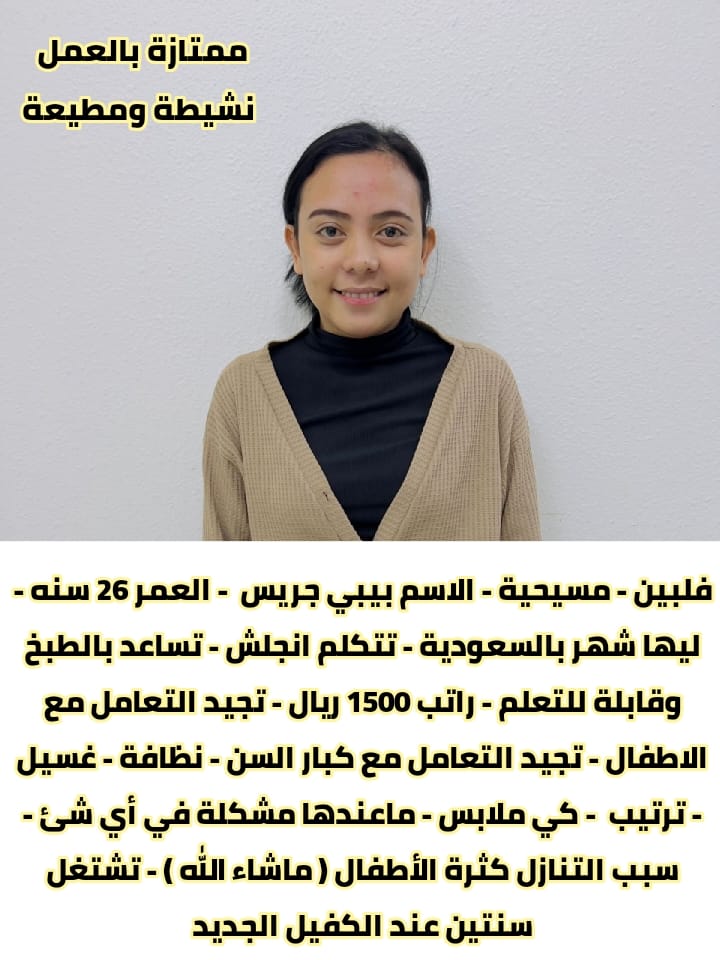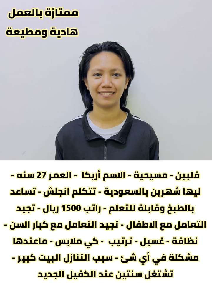حيااااكم الله ❤️ نعلن عن وجود عاملات علي اكفاء المهارات لتلبيه احتياجات البيت السعودي ممتازين بالعمل لنقل الكفال وعقد سنتين 🥇🥇   🔊ملحوظه 🔊 كما يوجد قسم خاص لاستقبال العاملات عن طريق النقل الجماعي او الطيران نحن في خدمتكم علي مدار ٢٤ ساعه 🥇 اذا كنت تريد التنازل عن عاملتك المنزليه بطريقه نظاميه لضمان حقكك وحق  الخادمه انت وخادمتك معنا بامان بفضل الله ❤ عقود موثقه بمنصه مساند ومضمونه لسنا الوحيدون ولكننا بعون الله الافضل بالمصدقيه وسرعه الانجاز 🥇🥇 في خدمتكم للتواصل وتساب 0578052462