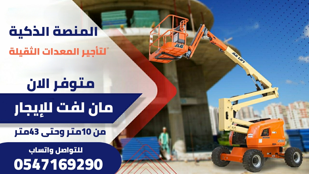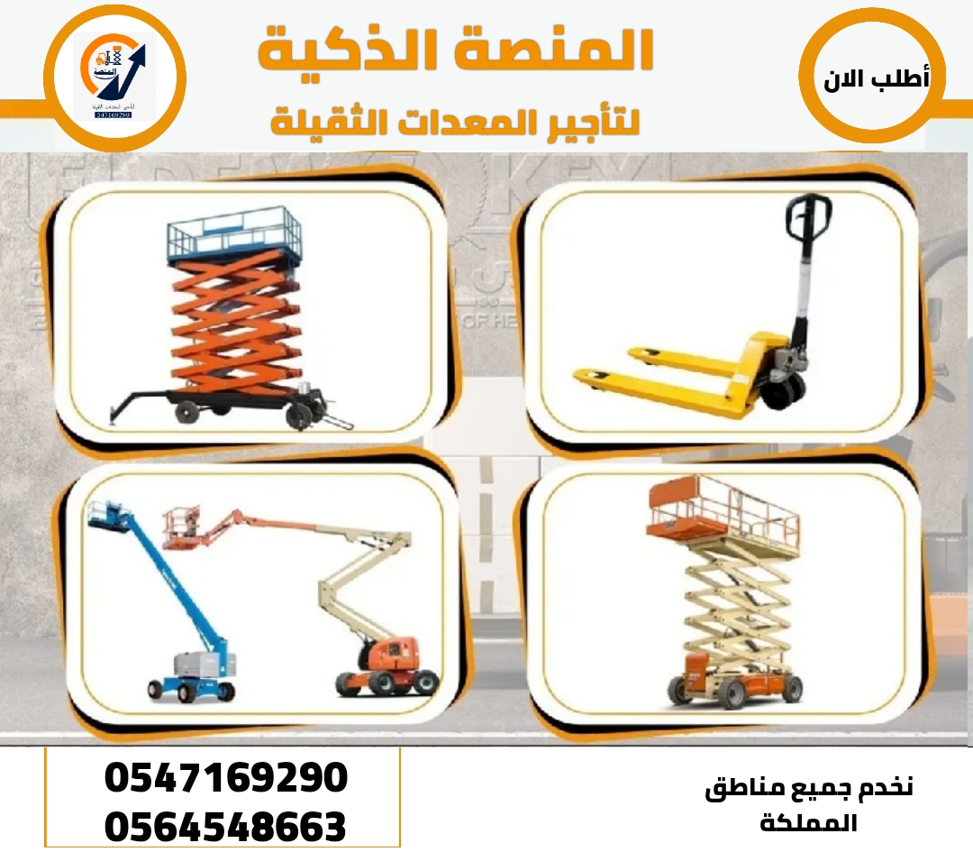عرض جميع الإعلاناتAlmonedah Smart Platform for Heavy & Light Equipment Rental We offer Scissor Lifts and Man Lifts for rent, available in all sizes from 6 meters to 53 meters, with daily, weekly, or monthly rental options. Our equipment is available across all regions of Saudi Arabia, ready for immediate delivery and operation, 24 hours a day. 🔹 Scissor Lifts for Rent: - Scissor Lift 6m for rent - Scissor Lift 8m for rent - Scissor Lift 10m for rent - Scissor Lift 12m for rent - Scissor Lift 14m for rent - Scissor Lift 16m for rent - Scissor Lift 18m for rent - Scissor Lift 20m for rent - Scissor Lift 22m for rent 🔸 Man Lifts for Rent: - Man Lift 12m for rent - Man Lift 18m for rent - Man Lift 22m for rent - Man Lift 26m for rent - Man Lift 32m for rent - Man Lift 40m for rent - Man Lift 45m for rent - Man Lift 53m for rent ✅ Why Choose Us: - We serve all cities and regions in Saudi Arabia - Daily, weekly, and monthly rental contracts - With or without operator based on your needs - Certified drivers from various nationalities (Pakistani, Indian, and more) - Modern fleet – 2024 & 2025 models - Fully compliant with Aramco license, TUV certification, and all safety regulations - 24/7 availability for urgent and ongoing projects 📞 Contact us: 0547169290 📧 Email: [email protected]